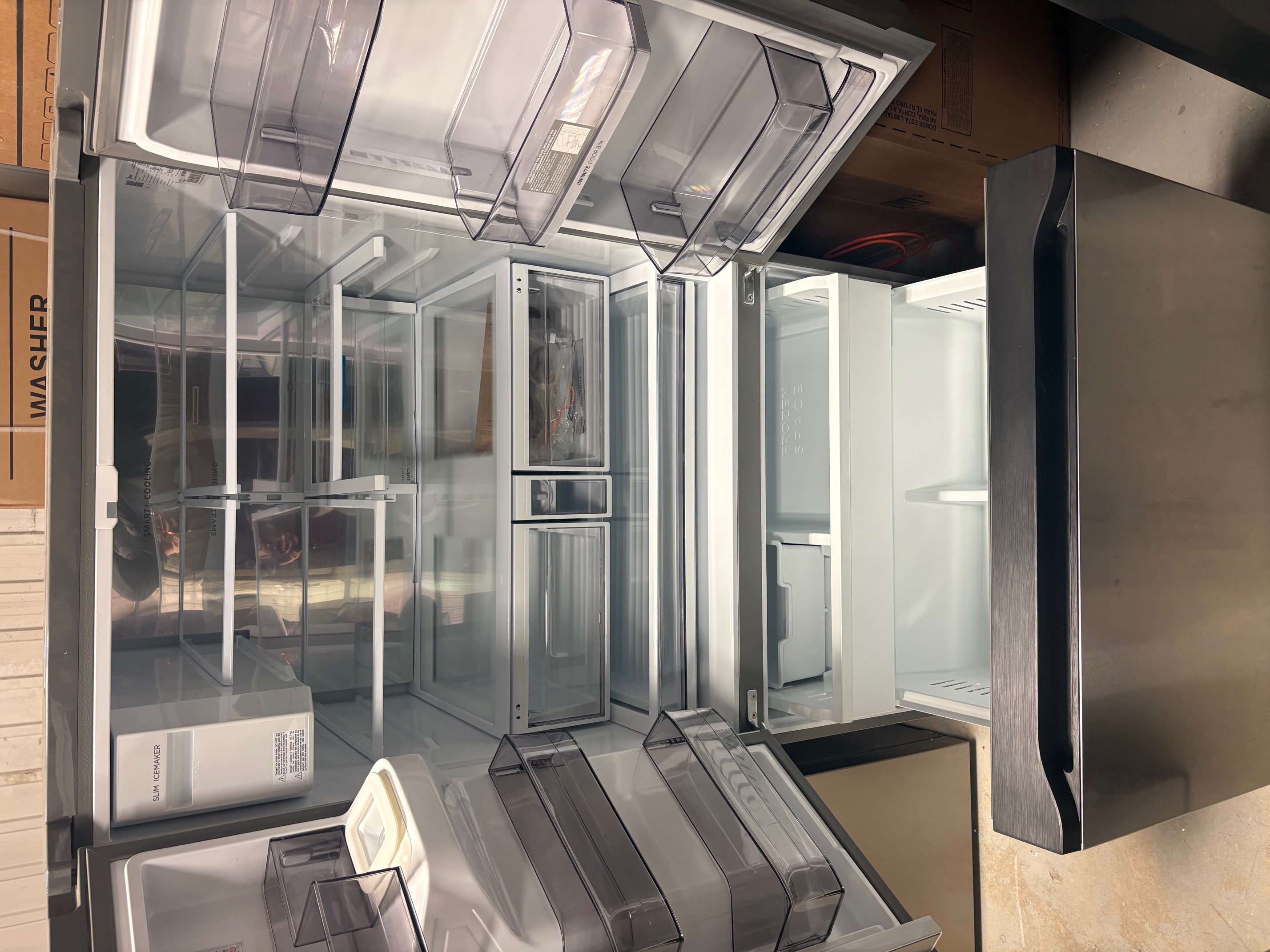 Espace maximum. Refroidissement plus intelligent. Commodité sans effort. Entrez dans l'avenir de la réfrigération avec ce réfrigérateur à deux portes de 28,9 pi³, conçu pour offrir une capacité, une flexibilité et une innovation ultimes aux cuisines modernes. Le distributeur automatique à une touche à vos besoins avec une plage de réglage en hauteur de 4 à 10 pouces, ce qui le rend parfait pour tout, des petites tasses aux grandes bouteilles. Grâce à la fonction Smart+ Cooling, vos aliments restent frais plus longtemps, tandis que l'étagère infinie et le bac de porte infini offrent une polyvalence inégalée pour accueillir des articles de toutes les formes et de toutes les tailles. Profitez de la puissance d'une double machine à glaçons, située à la fois dans le réfrigérateur et le congélateur, pour un approvisionnement toujours prêt. La machine à glaçons et le filtre à eau, minces et élégants, permettent de gagner de la place tout en garantissant une eau et des glaçons propres et rafraîchissants. Conçu pour la commodité, ce réfrigérateur est doté d'un système Wi-Fi et d'une application de contrôle, vous permettant de surveiller et d'ajuster les paramètres depuis n'importe où. À l'intérieur, vous trouverez 2 bacs à légumes à humidité contrôlée, un tiroir de garde-manger pleine largeur et 5 lampes DEL lumineuses qui éclairent chaque recoin. Recouvert d'acier inoxydable résistant aux empreintes digitales avec un refroidissement en métal pour plus de performance et de durabilité, ce réfrigérateur est le mélange parfait de la forme, de la fonction et du design haut de gamme.Géant : 28,9 pi³