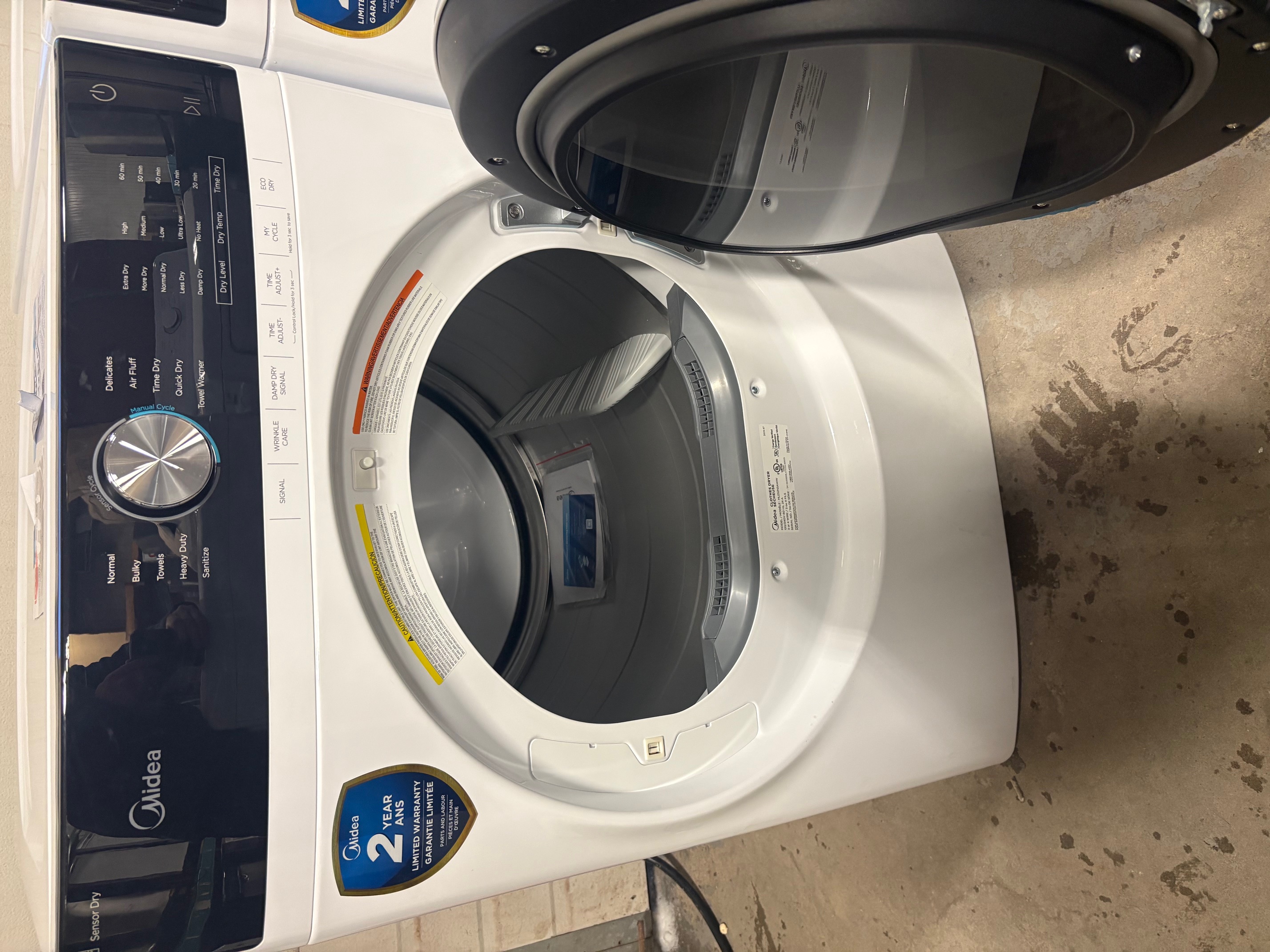Sécheuse électrique à chargement frontal Midea, 8 pi³, blanche