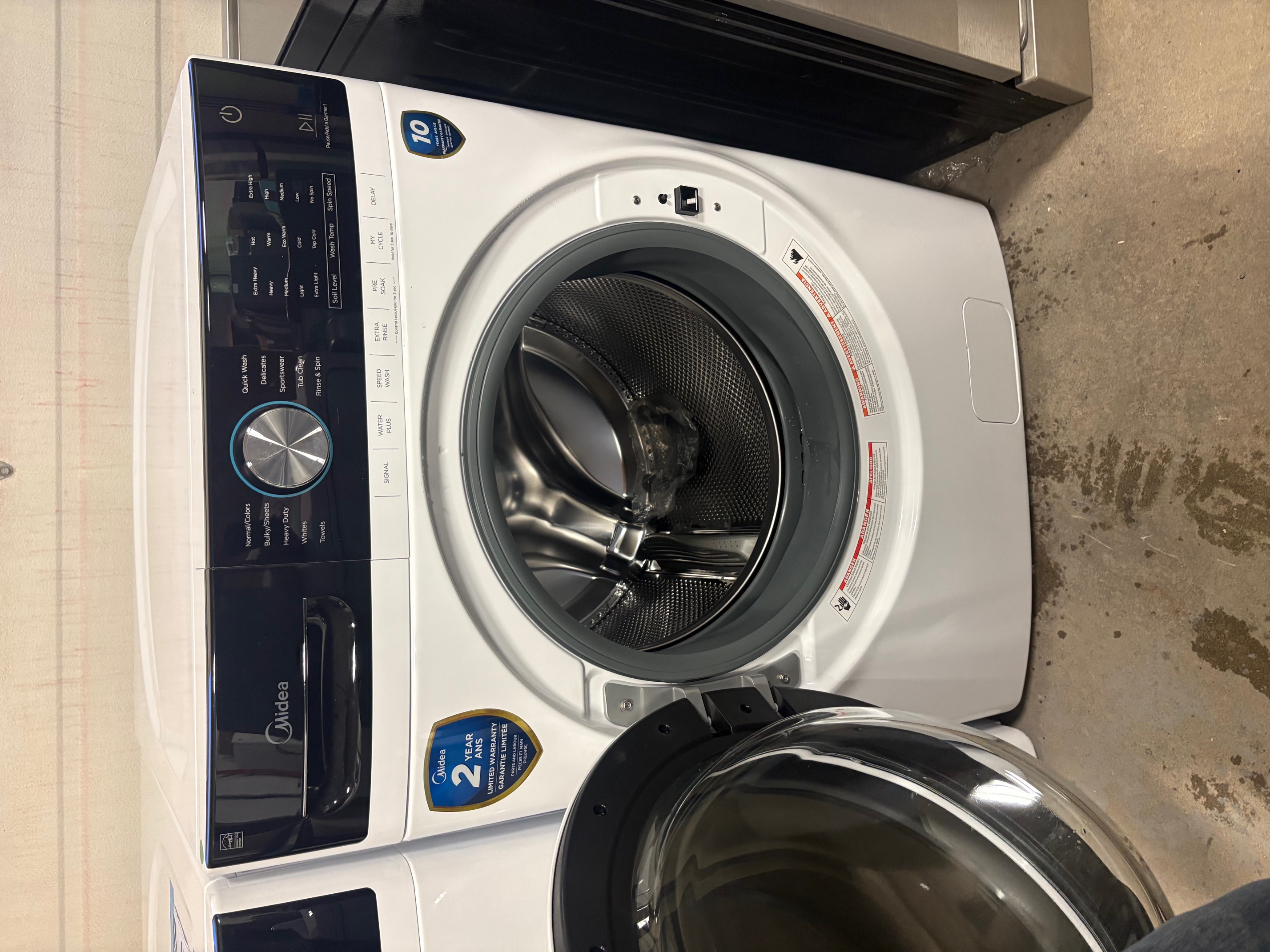 Laveuse Midea à chargement frontal de 5,2 pieds cubes avec 10 cycles de lavage préprogrammés