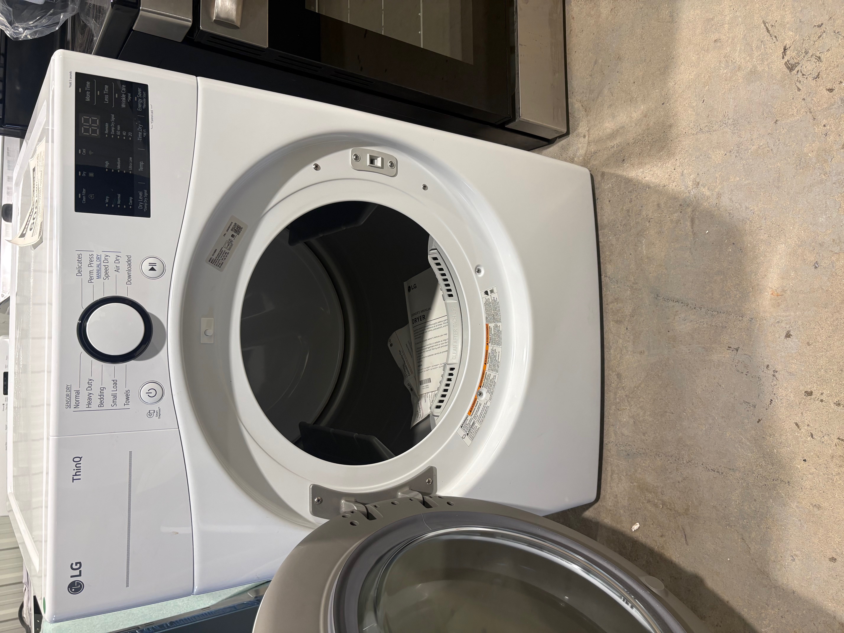 Sécheuse électrique à capteur LG 7,4 pi³ superposable porte battante réversible ventilation à 4 voies blanche