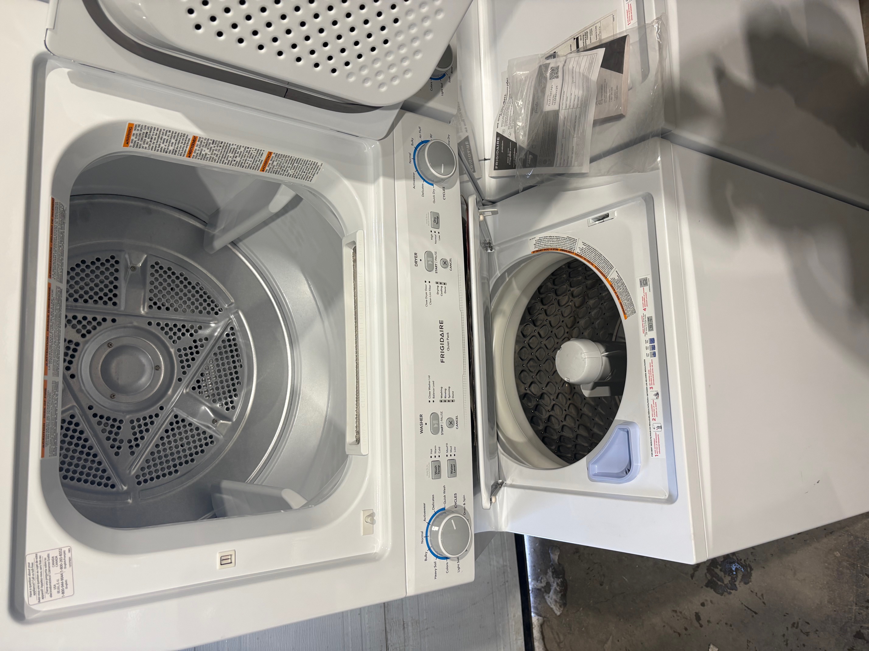 Solution économique pour les petits espaces, ce centre de buanderie pratique Frigidaire comprend 10 cycles de lavage ainsi que 6 cycles de séchage pour répondre à vos nombreux besoins. La laveuse à haute efficacité de 4,5 pi³ comporte un agitateur central conçu pour que la laveuse puisse contenir plus de vêtements à chaque cycle. La fonction MaxFill fournit un maximum d'eau pour un nettoyage optimal. La sécheuse de 5,6 pi³ vous permet de sélectionner un cycle de séchage minuté entre 15 et 90 minutes. De plus, les cycles de lavage et de séchage rapides vous font économiser un temps précieux lorsque vous êtes pressé, et un moteur silencieux intégré vous permet de faire la lessive à tout moment de la journée.Fonction MaxFill(MC) qui procure un maximum d'eau pour un nettoyage en profondeur