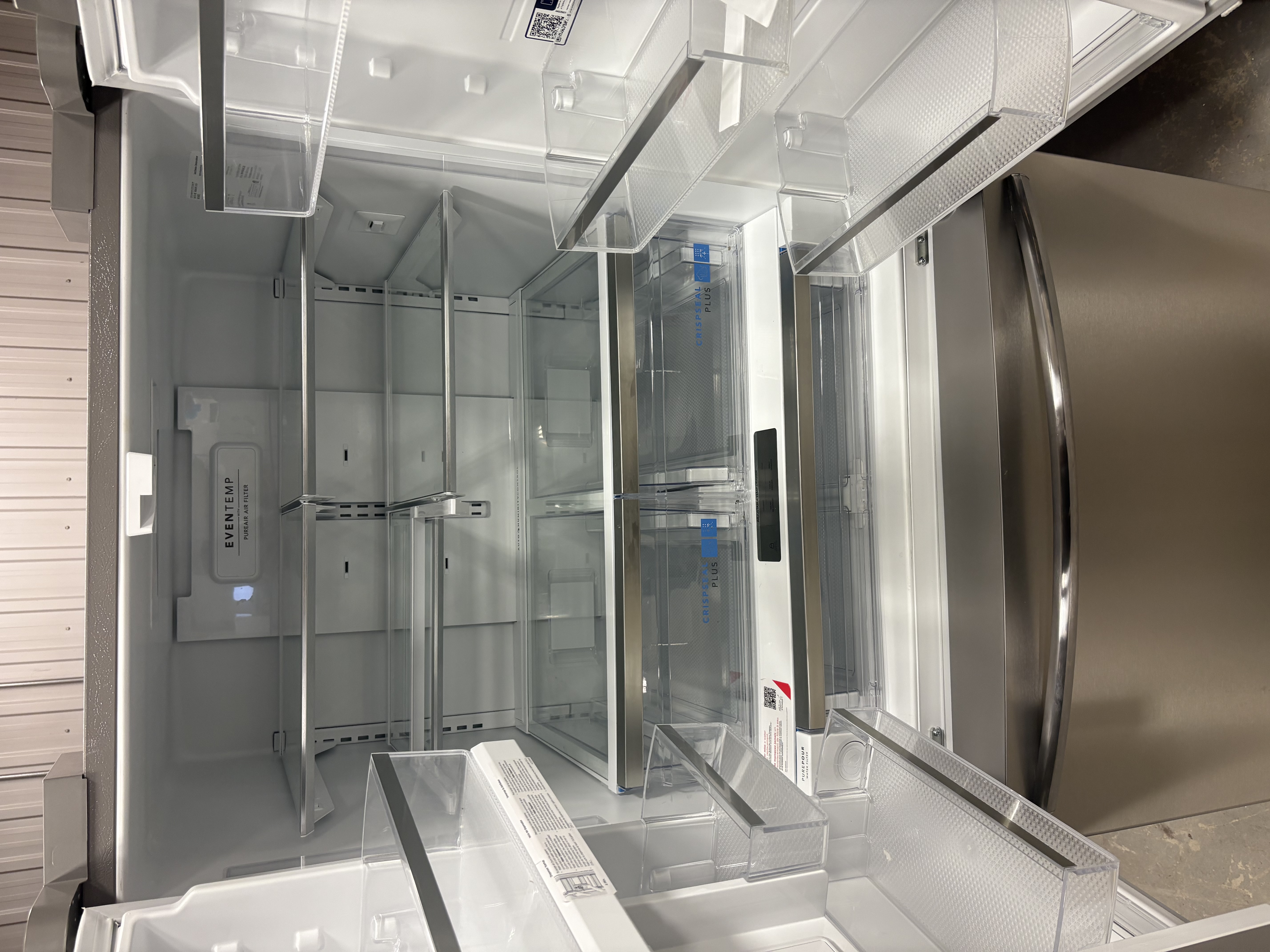 Ce réfrigérateur à porte française Frigidaire Gallery offre un système de fraîcheur qui maintient le goût et la texture de vos aliments les plus délicats. Le système de fraîcheur regorge de technologies qui maintiennent la fraîcheur des aliments et réduisent le gaspillage alimentaire, telles que notre système de refroidissement, nos bacs à légumes et notre filtration de l'air et de l'eau. Ce réfrigérateur est doté d'un joint Crisp Seal et de bacs à légumes avec technologie d'humidité automatique qui élimine automatiquement l'excès d'humidité et un filtre en éthylène ajouté réduit les gaz émis par de nombreux fruits et légumes qui causent la détérioration. Il offre également des solutions d'organisation intelligentes qui maximisent l'espace utilisable, y compris l'entreposage des condiments dans la porte, la glissière sous l'étagère et le système de rangement pour accessoires. Le tiroir à température réglable, avec trois réglages de température, gardera vos aliments frais.Les bacs à légumes CrispSeal(MD) Plus, dotés de la technologie de régulation de l'humidité, éliminent automatiquement l'excès d'humidité. De plus, un filtre à éthylène réduit le gaz émis par de nombreux fruits et légumes et qui entraîne leur détérioration