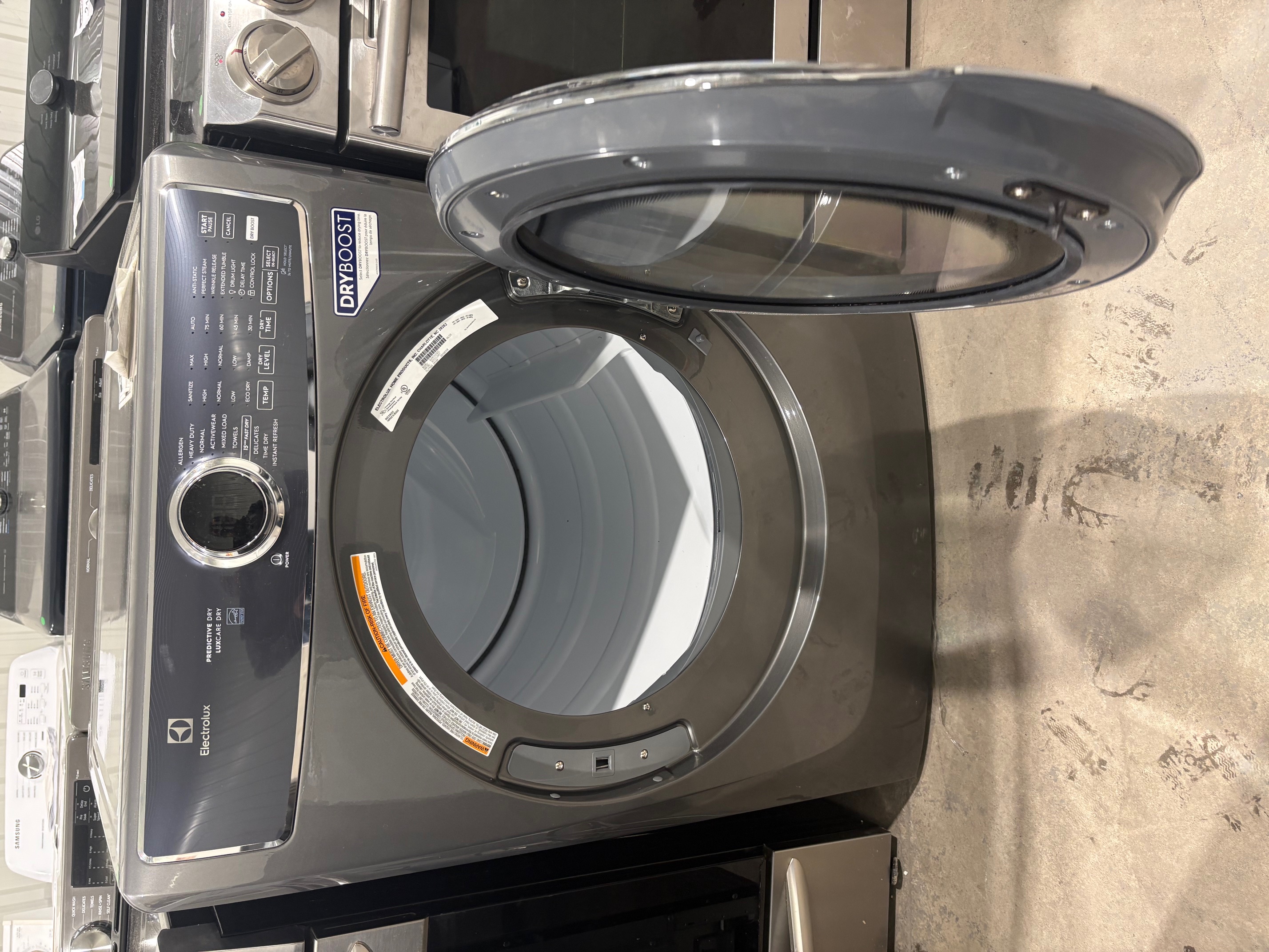 Sécheuse électrique Electrolux 8,0 pi³ superposable porte battante à évent avec système Predictive Dry Titane
